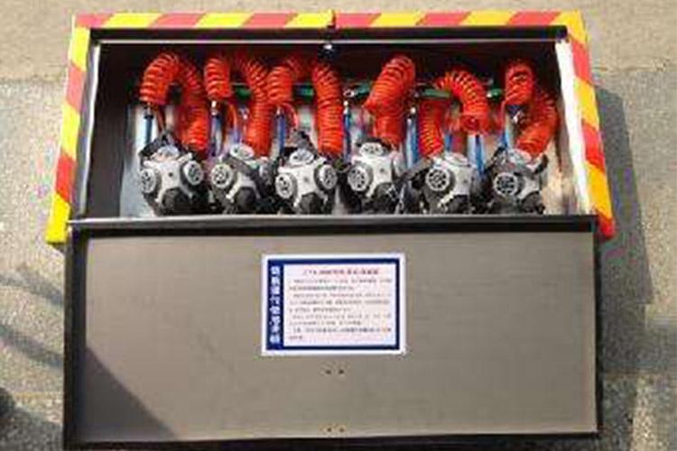 ZYJ壓風(fēng)自救裝置用于具有煤與瓦斯突出的煤礦井下救災(zāi)防護。本裝置一箱六組,能同時提供六人使用,達到互相照顧的效果。采用輕型呼吸面罩直接帶在嘴上進行呼吸,還具有穩(wěn)定調(diào)節(jié)壓力、手動流量調(diào)節(jié)、三級消音、過濾、排水、防塵等六種功能,還能在彈簧管范圍內(nèi)自由活動。通過該裝置輸送新鮮空氣,使避災(zāi)人員能長時間呼吸輕松,達到安全避災(zāi),穩(wěn)定工作情緒的目的。